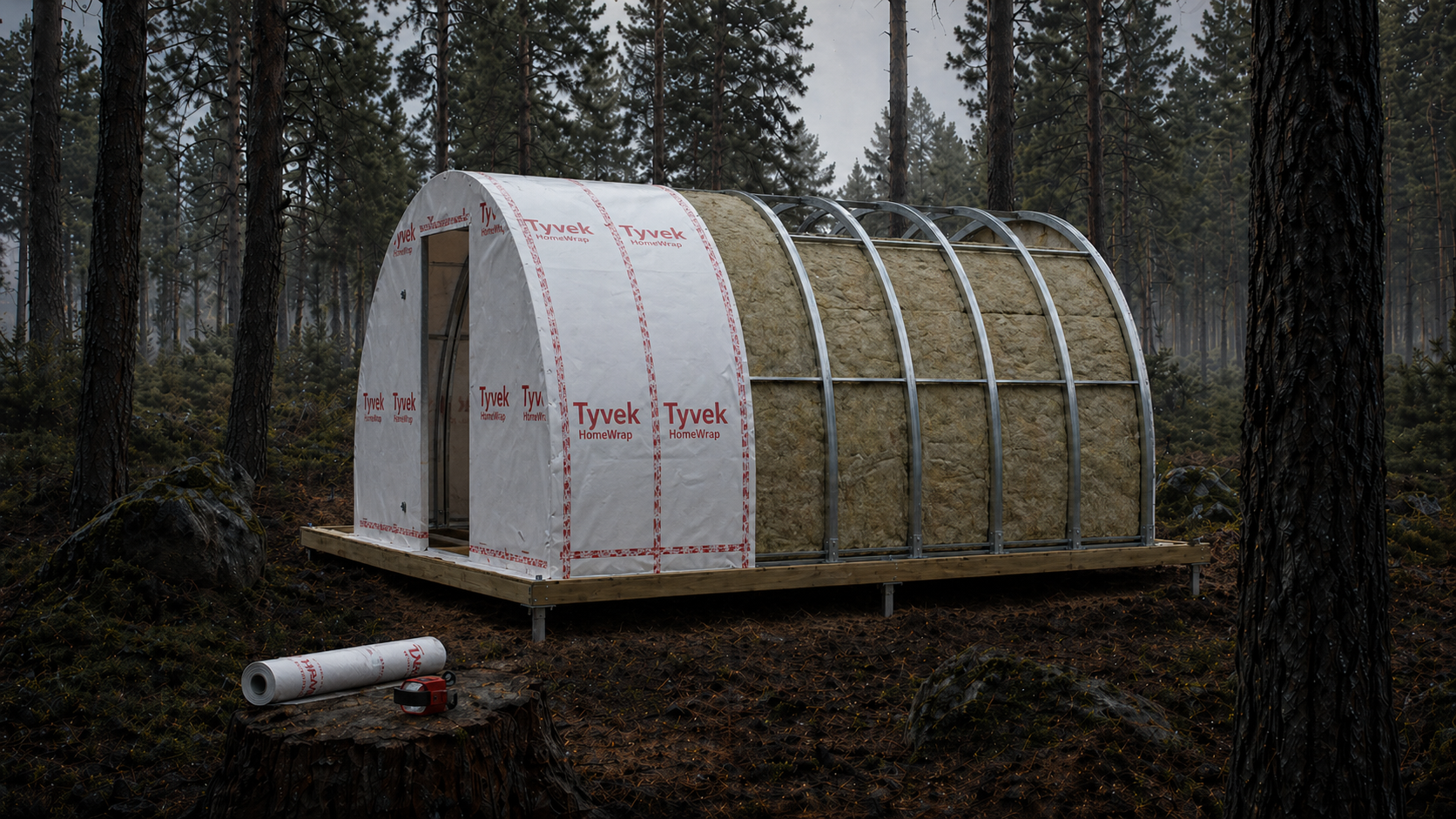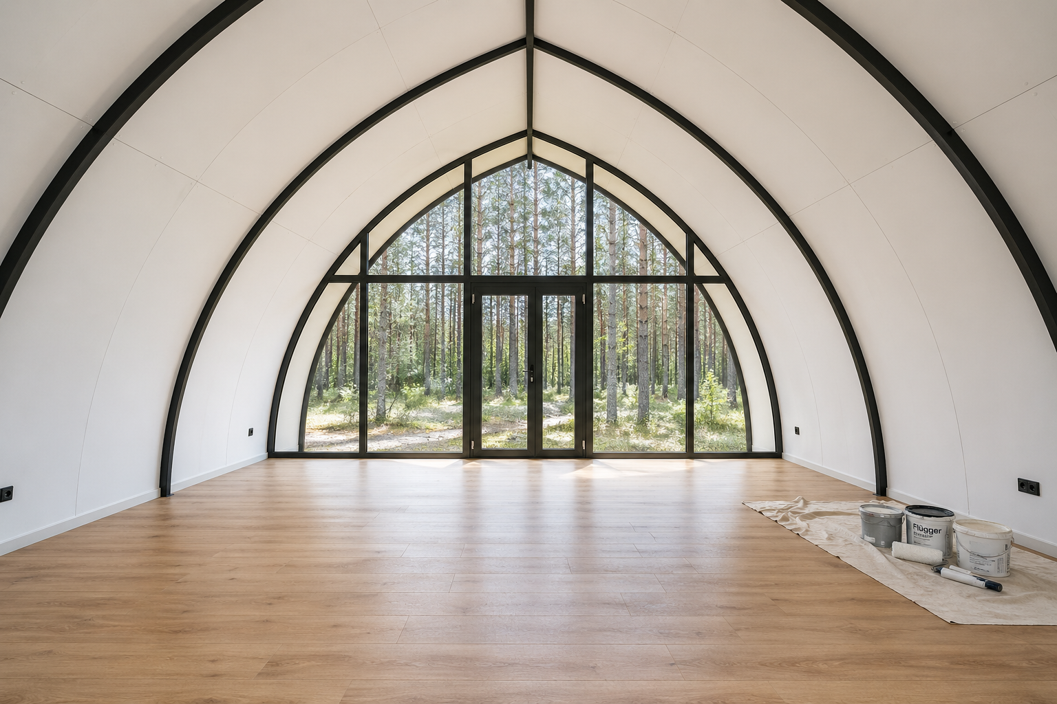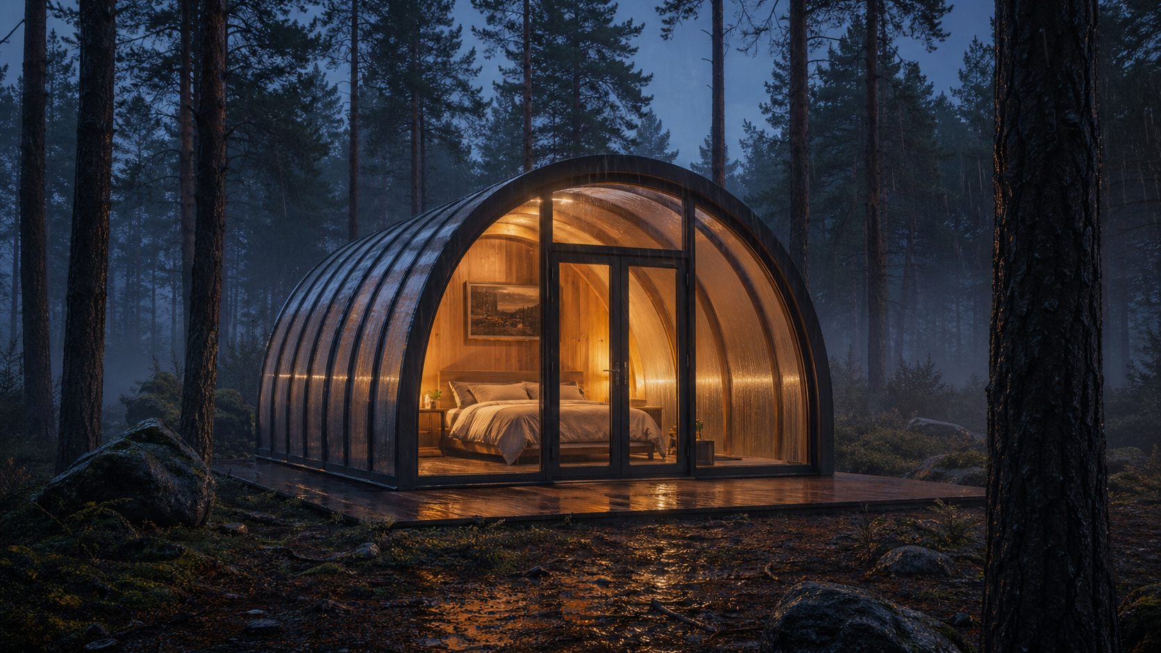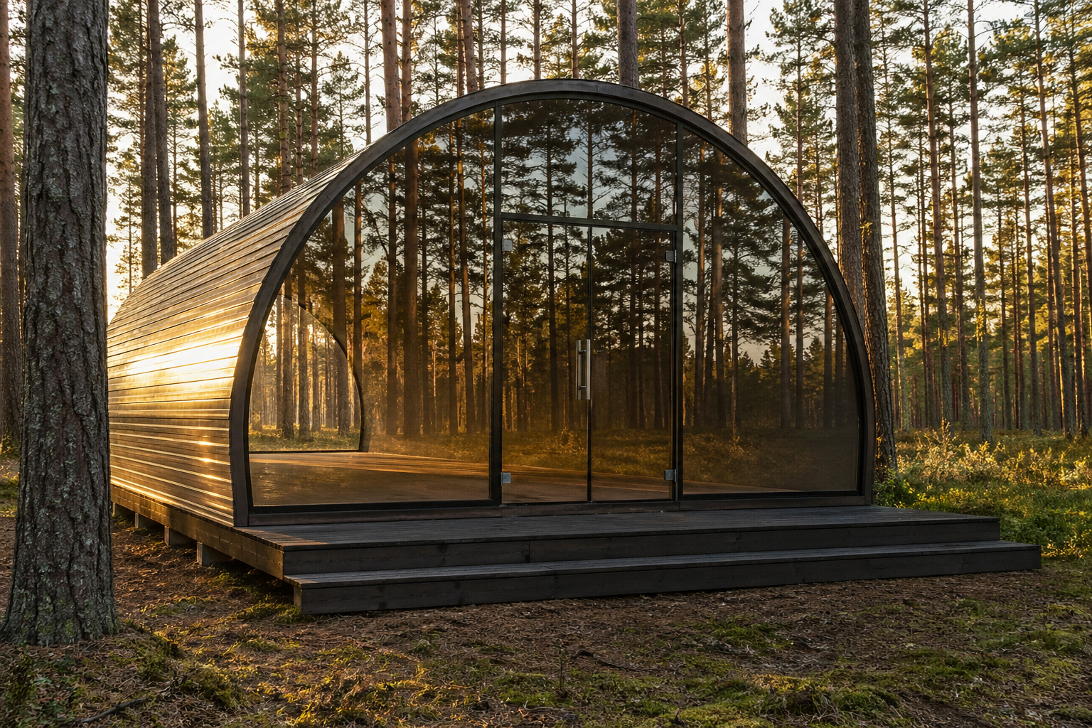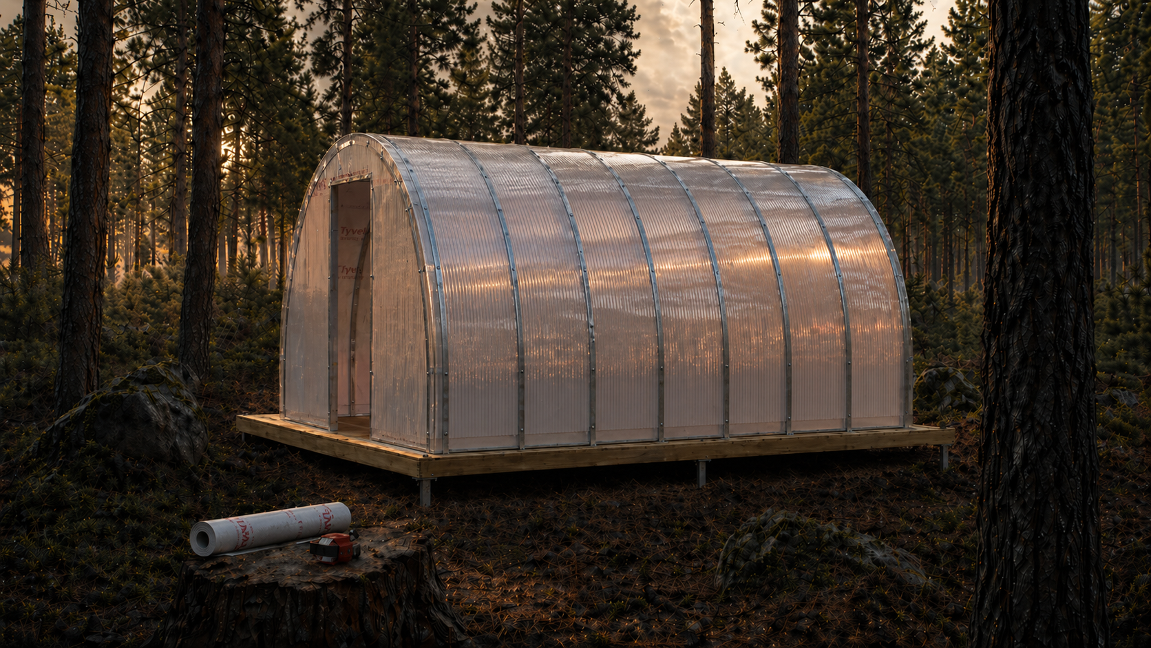 Прозрачные панели на термошайбы и EPDM. Снаружи капсула становится домом.
